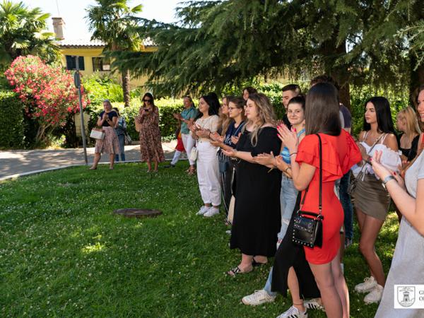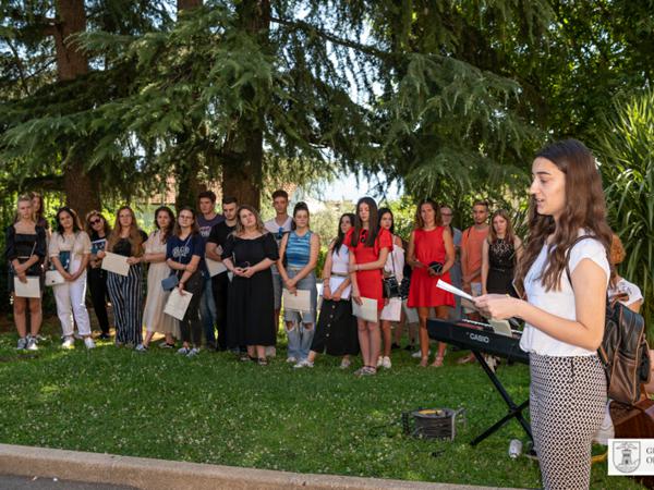 Danas je ispred Gimnazije Eugena Kumičića održana prigodna svečanost u povodu završetka školske godine i proglašenje učenika generacije. Učenici generacije Tei Belac Grad Opatija poklonio je sliku akademskog slikara Claudija Franka.